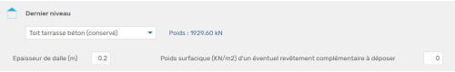 - l’épaisseur de la dalle, toujours considérée en béton, en mètre – la valeur par défaut de 14cm est modifiable ;
