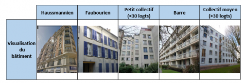 - Précision sur le type d’immeuble : Cette précision apporte une information complémentaire afin d’estimer le comportement énergétique du bâtiment existant. Les appellations de ces sous-catégories sont propres à l’outil Lign2Toit : hausmannien, faubourien, petit collectif, collectif moyen, barres. Elles sont précisées dans la page » Hypothèses et méthodologies de calculs »