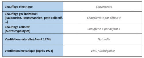 Le choix de la typologie, de la période constructive et du vecteur énergétique déterminera les équipements techniques pris en compte pour la modélisation de l’état initial :